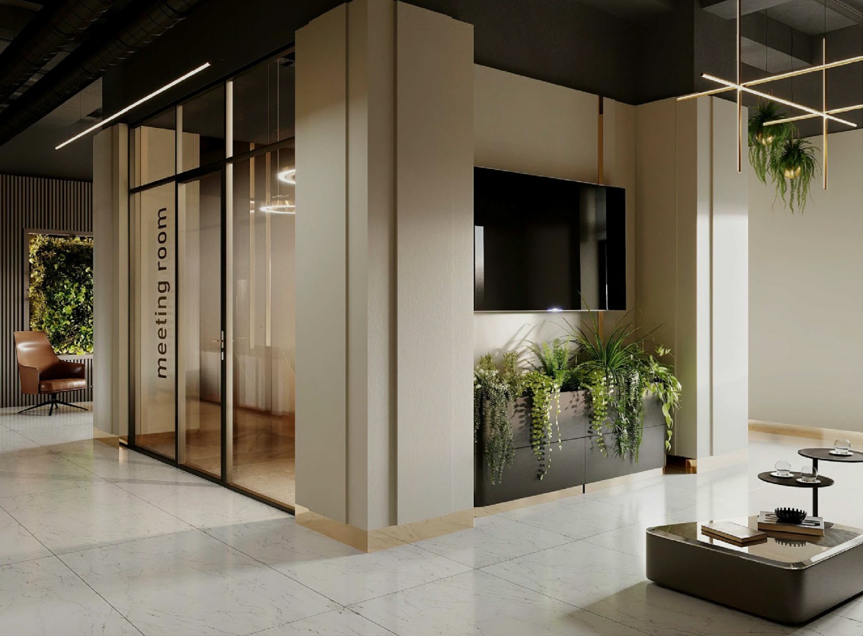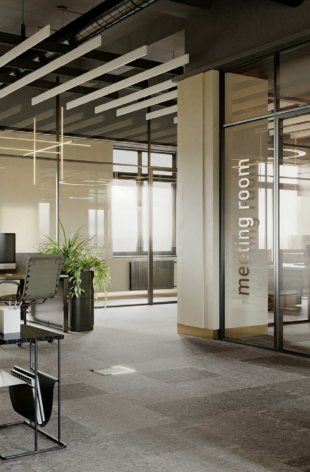 Internal floor hatches with a predetermined pitch provide a flexible space organization system